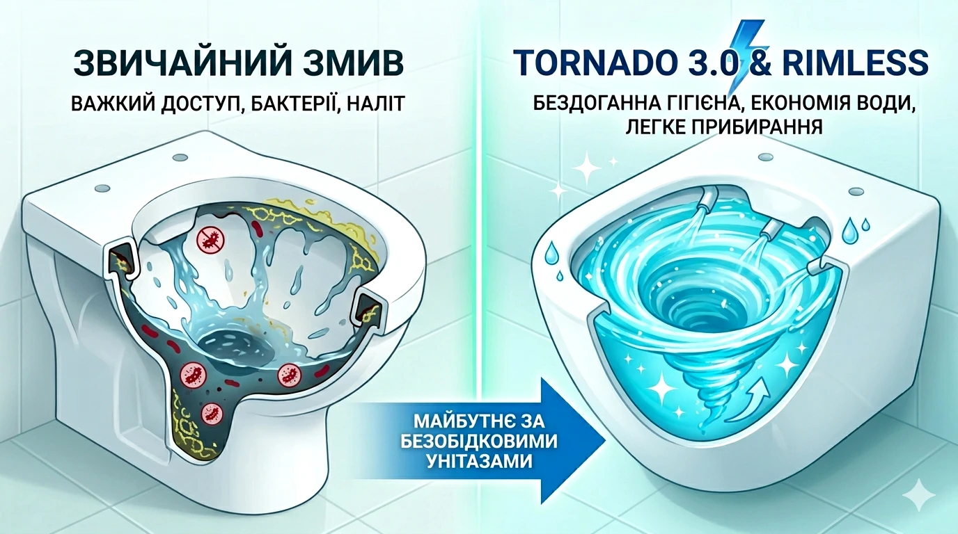 Tornado 3.0 проти звичайного змиву: чому майбутнє за безобідковими унітазами